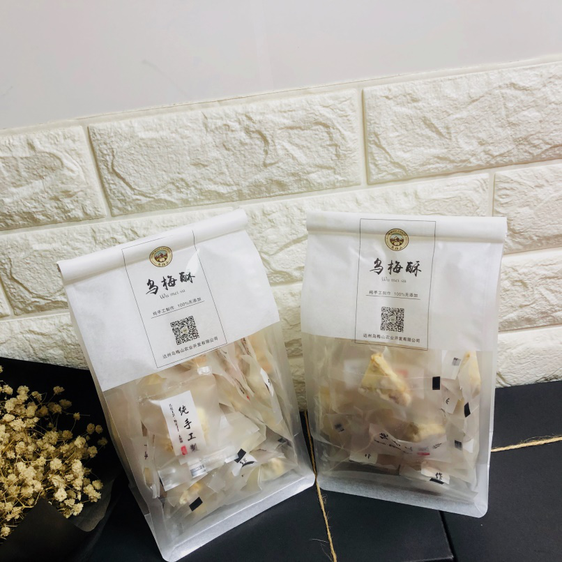 乌梅酥:精挑细选乌梅原材料,每一道食材都通过甄选,对于乌梅酥坚持“0”添加。纯手工制作,少了一些工整却多了一份自然。